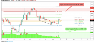 If we assume a continuation of the bear trend, the next major support is found between $68 and $85.