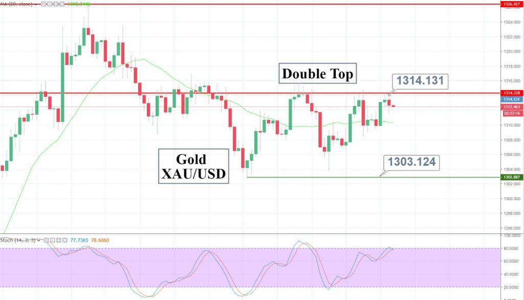 Gold is still facing strong resistance at $1,314. Below this, the metal is highly likely to stay bearish until $1,307 and 1,302.