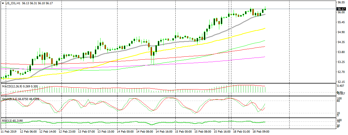 Crude Oil retraced lower during the first week of February after the bullish reversal during January. Although, that pullback lower is complete and Oil has resumed the bullish trend. In the last week, the 20 SMA (grey) has been providing support for US Crude Oil and it did so again today, so that moving average looks like a good place to look for longs on the H1 chart. Oil has also broken above the 100 SMA on the daily chart which provided resistance a couple of weeks ago, so now the upside is open for buyers until $60.