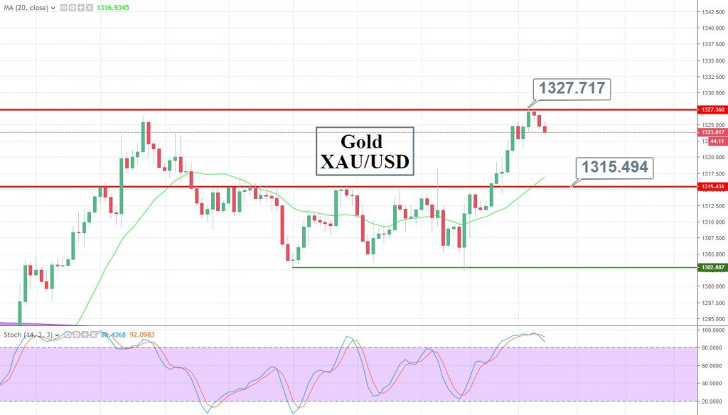 During the early Asian session, the precious metal gold prices flew to near 10-month highs at $1,327 on a weaker dollar and the ongoing developments in the US-China trade deal.