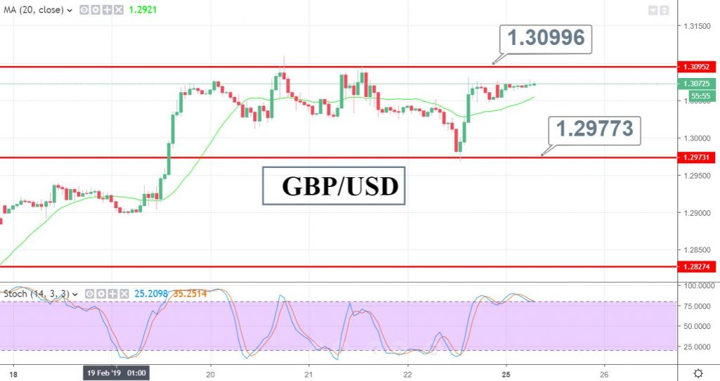 On the 4-hour chart, GBP/USD is trading sideways below a strong resistance level at $1.3100. At the moment, the pair is trading at $1.3075 and it may face an immediate resistance near $1.3100 and $1.3145 along with support near $1.2970.