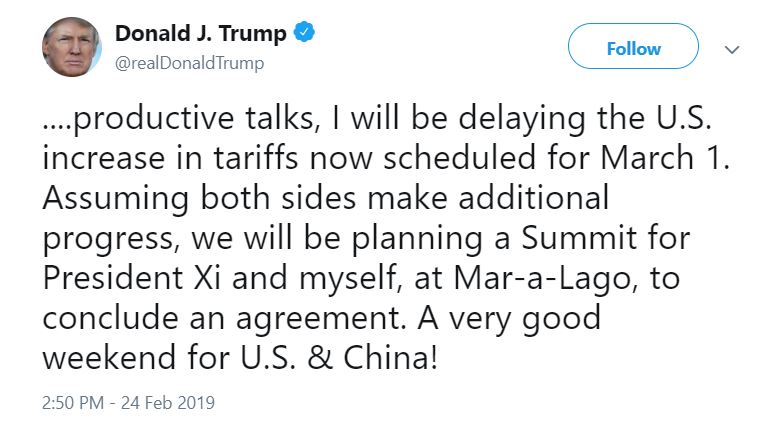 Besides that, he also stated that he would plan a summit meeting with China if the progress on the trade deal continues.