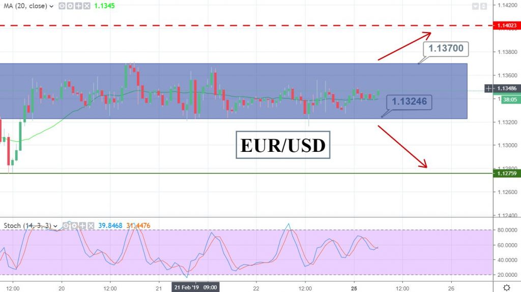 The Euro-to-Dollar currency pair is trading in a thin trading range of $1.1370 – $1.1325. The bullish momentum is weaker as continued concerns over Eurozone growth weigh on the Euro. On the other hand, the dollar is also weakened after the FOMC meeting minutes released during the previous week.