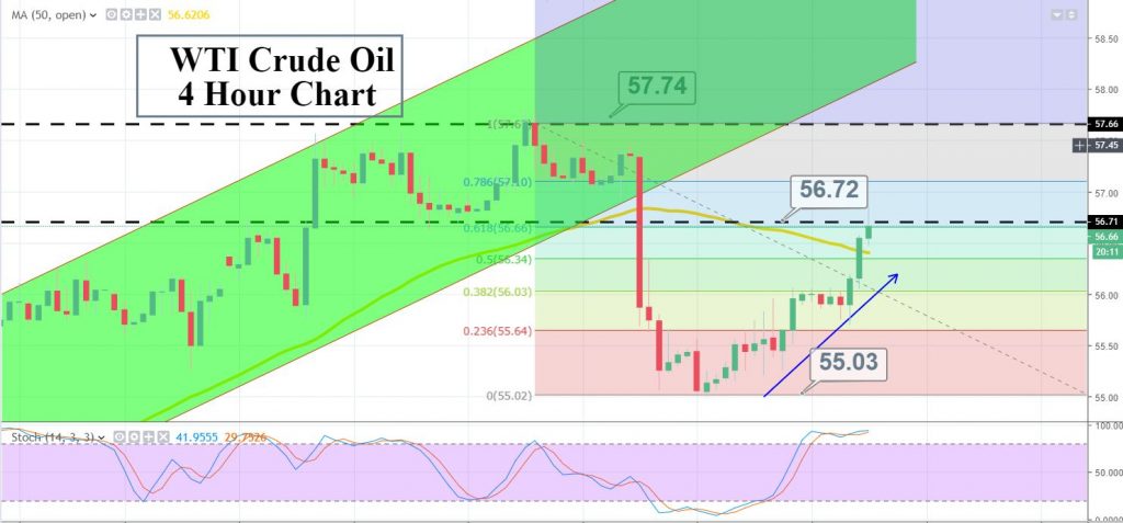 Looking at the technical side, crude oil is facing a solid resistance near $56.70 (61.8% Fibo Level). The 100 periods MA is blocking its way to the upside. The support remains at $55. The violation of $56.70 can lead to oil prices towards $57.10 and $57.70.