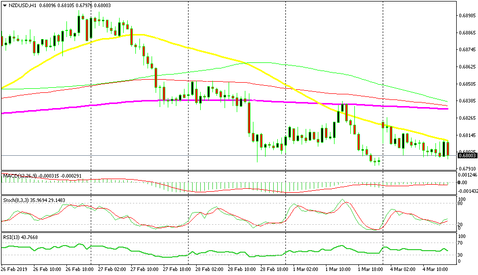 NZD/USD turned bearish last week and we had a couple of winning signals selling the retraces higher. Last night though, this pair opened with a bullish gap higher after Donald Trump complained again about the strong Dollar. But, the 50 SMA (yellow) provided resistance and it has been pushing the price lower since then. So, this indicator is a good place to look for shorts once a retrace higher is completed.