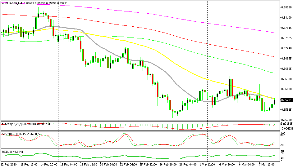 A while ago we opened a sell signal in EUR/GBP. This pair has been on a bearish trend for three weeks and yesterday it made another bearish move after the ECB turned from slightly hawkish to dovish. But we have been seeing a retrace higher today; the retrace is compete on the H1 chart and on the H4 chart above we have the 20 SMA (grey) and the 50 SMA (yellow) where the price is right now. The 50 SMA has been pierced before this week but the price has returned back below it, so let’s see how this pair reacts now.