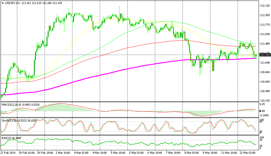 USD/JPY retraced lower last week on larger time-frames but the 200 SMA which had provided support on the H4 chart before did so again and pushed the price higher. Yesterday we saw a slight bullish move in this pair but during the European session we saw another retrace lower today. But, the 200 SMA (purple) provided support on the H1 chart as well and the price formed a hammer candlestick which is a reversing signal. Stochastic is also oversold now which means that the retrace lower is complete.