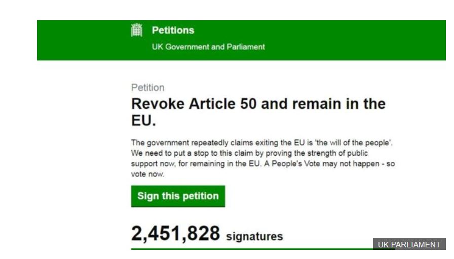 The Parliament’s petitions board tweeted that the percentage of impressions was “the highest the website has ever had to deal with” after the website crashed.