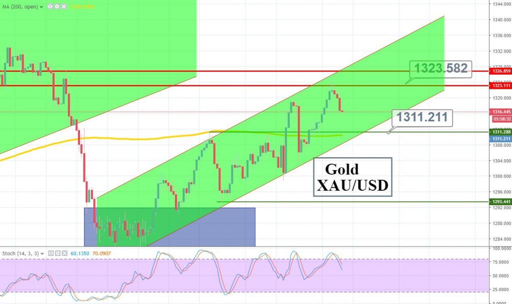 For now, the trade idea is to stay bearish below $1,325 and bullish above $1,311 with a 40 pips stop loss on both of the sides.