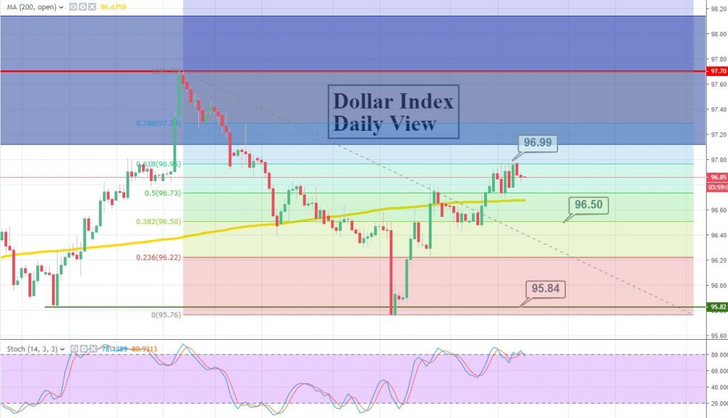 The leading indicators such as RSI and Stochastic have entered the overbought region. The dollar index (DXY) is likely to continue trading bearish until $96.70, and the violation of this may lead it towards $96.50.