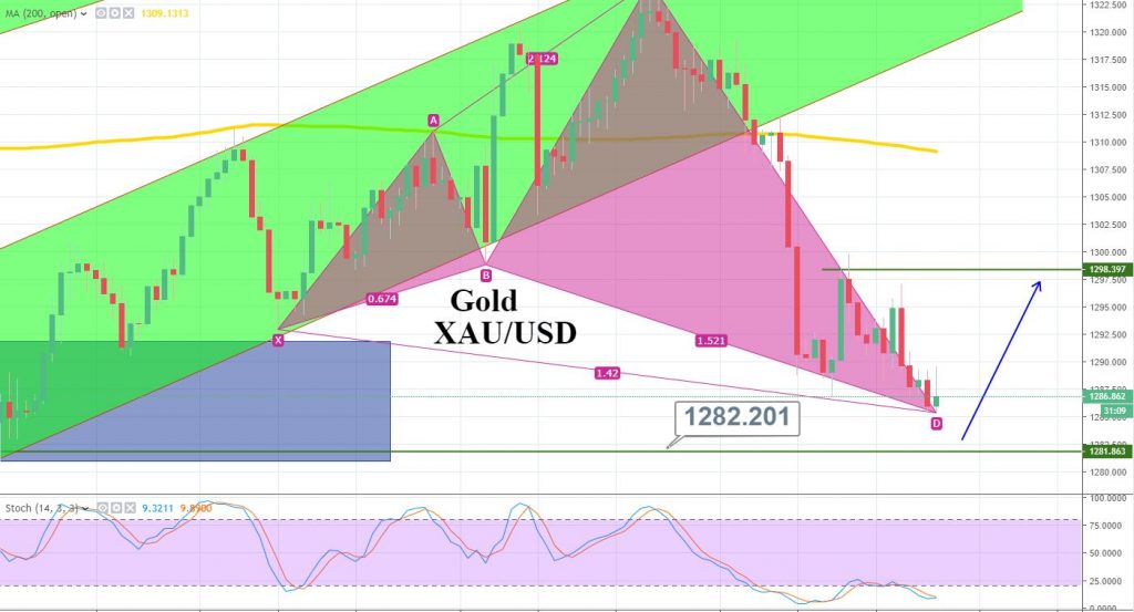 Looking at the 4-hour chart, gold has formed a bullish butterfly pattern. The pattern initiated its C to D wave from $1,324 and is very likely to complete it around $1,281/85.