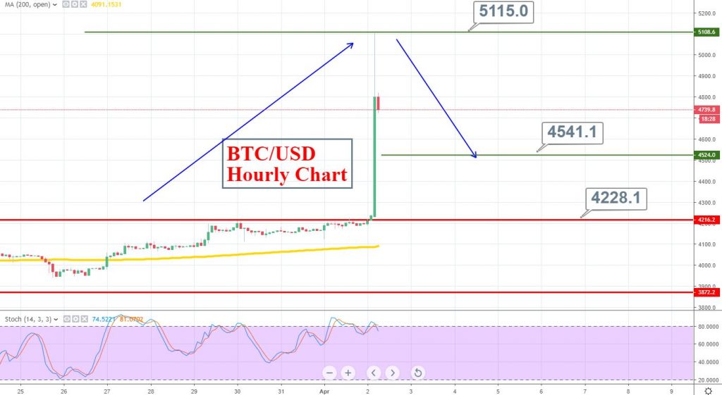During the late Asian session, BTC/USD broke above $4,500 somehow. That’s right fellas, the leading cryptocurrency Bitcoin has crossed $4,500. At the time of writing, BTC/USD made more than 10% price movement for no valid reasons. This sudden move came out dramatically even as BTC traded in the $4,200 range for the better part of three days.