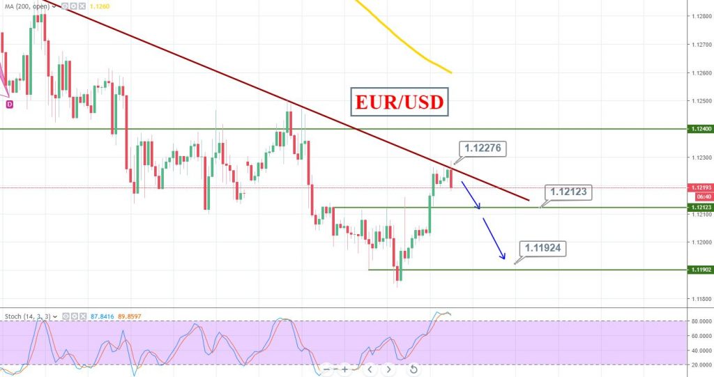 Before the news, the EUR/USD is likely to trade bearish $1.1230 with a stop above 1.1240 and a target of $1.1200 and $1.1180.