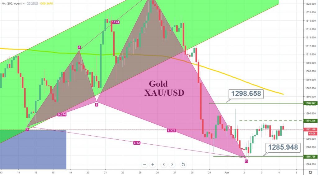 - Gold formed a bullish butterfly pattern that initiated its C to D wave from $1,324 and completed it around $1,285.