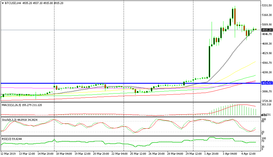 The first move to the $5,000 level was rejected despite the strong rally worth nearly $1,000 in two hours. The price retraced back down to $4,600s but the upside move resumed pretty quickly and the buyers pushed above the $5,000 level on Wednesday. This was a sign that buyers were still in control.