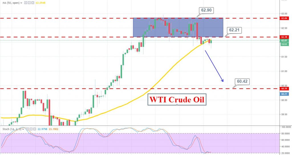 I’m looking to stay bearish below $62.20 with a stop loss above $62.50 and take profit around $61.40 today.