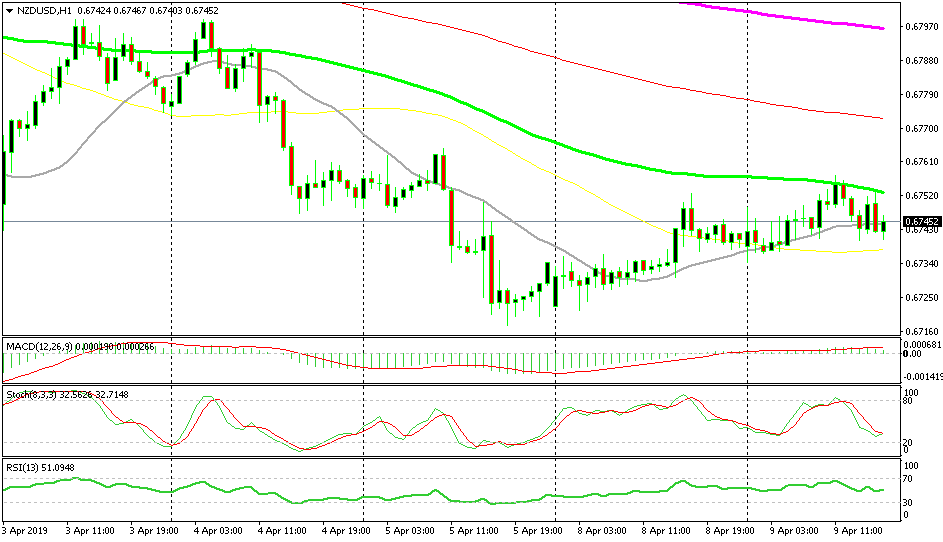 We went short on NZD/USD yesterday as this pair was retracing higher. It was following other currencies higher against the USD yesterday which has carried on today, but this pair still remains the weakest among major pairs. The H1 chart is well overbought and the H4 chart has become overbought as well now. The 100 SMA (green) has been providing resistance all day today and it seems that the buyers are giving up now.