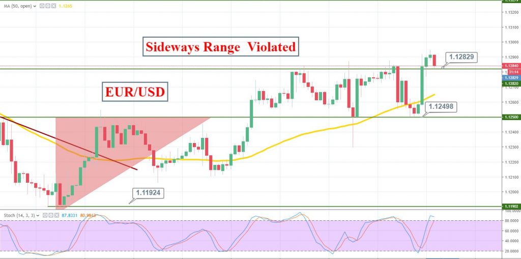 On Thursday, EUR/USD has shown an aggressive reaction to this news as the EUR/USD prices reached 1.1240. Yesterday, the pair was facing resistance at 1.1285 and support at 1.1250. But this resistance isn’t valid anymore, and in fact, it’s likely to work as a support level now.
