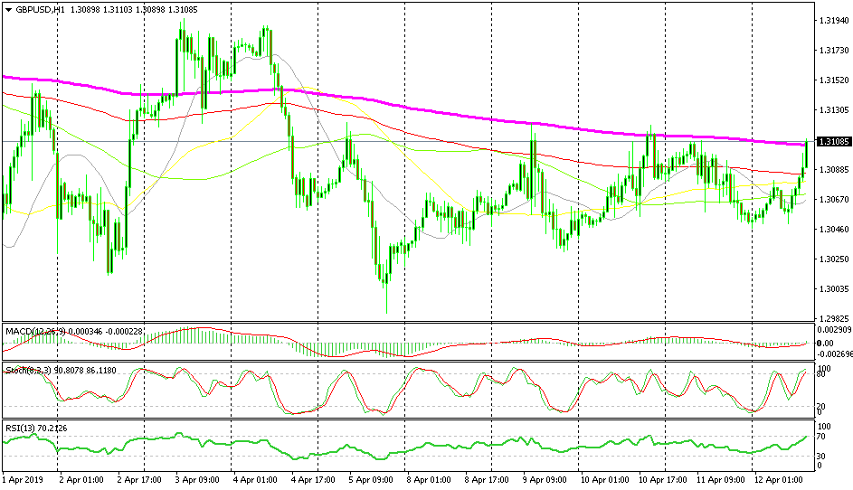 A while ago, we decided to go short on GBP/USD. This pair has been trading in a range all week bouncing up and down. Right now, the price is near the top of the range and the H1 time-frame is overbought. The 200 SMA (purple) has also been providing resistance all week, so it seems like GBP/USD might reverse down from here. The 100 SMA is standing at these level on the H4 chart so that should add some more strength to the resistance are above.