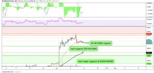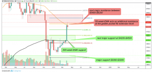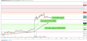 The 4-hour chart is a very important chart to look at right now. The 50-EMA currently acts successfully as support and once it is bearishly broken, Bitcoin finds its next support at $4600, where the 200-EMA is located at.