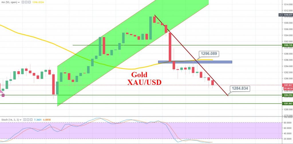 - On the hourly timeframe, gold is holding above support cum resistance level of 1,284.