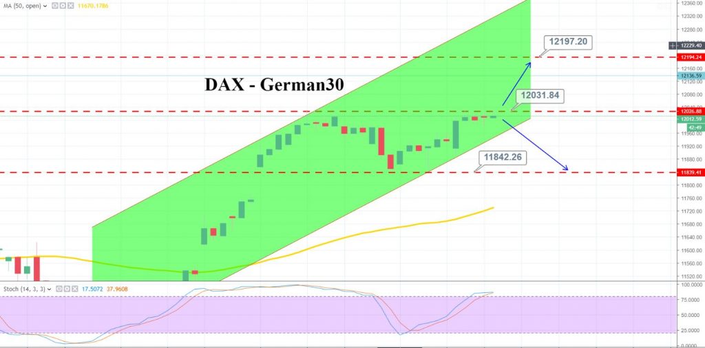 Coming down to the technical side, the German30 is testing a healthy resistance level of 12,036.