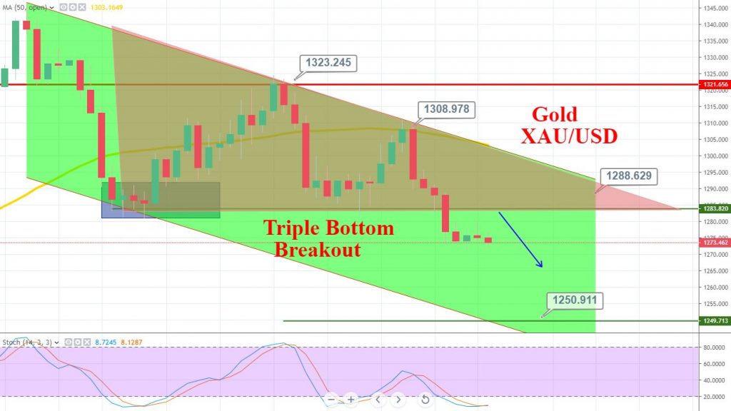 Gold’s Descending Triangle Breakout – Decline Continues