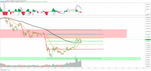 The bullish crossover in the daily chart still gives hope to see further upward movement and acts as strong support for now. With the ranging between this support level and the golden pocket fib extension level, the market has to decide where it is going next. The MACD lines are still bearishly crossed but the histogram is ticking higher, which is bullish. If the market doesn’t manage to break the golden pocket level, we might see heavy downward movement very soon.