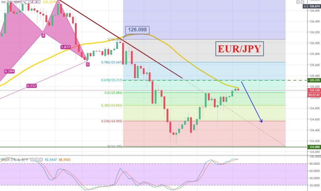 The recent candle is half bullish and half bearish, suggesting a neutral bias of traders. It also confirms that the traders are respecting this EMA. On the lower side, EUR/JPY can find support around 124.800 and 124.600 today.