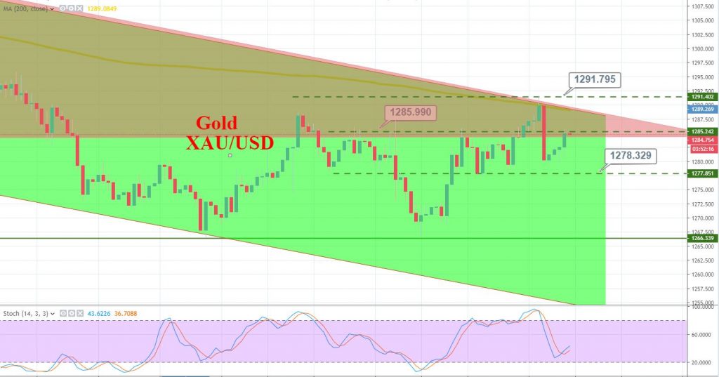 The technical side of the gold hasn’t changed much this week as the market continues to trade in the sideways range. You can see in the 4- hour chart below, gold is facing a substantial resistance at $1,291 along with support at $1,287.
