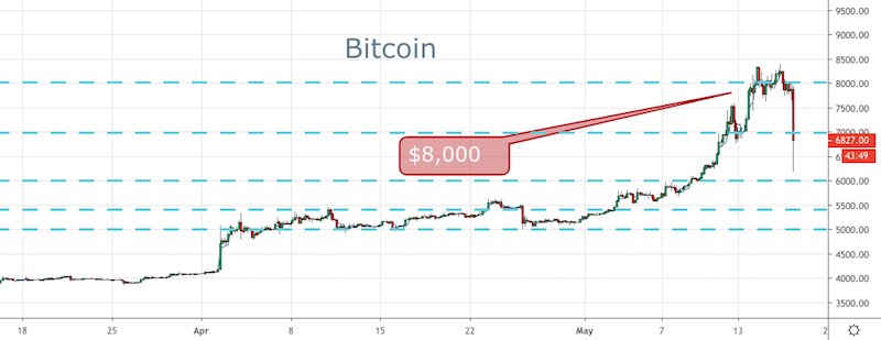 BTC was previously above $8,000 but couldn’t hold.