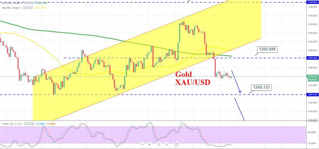 The bearish breakout of 1,275 can trigger further sell-off until 1,266 and 1,261 while resistance stays around 1,282 and 1,296 today.