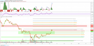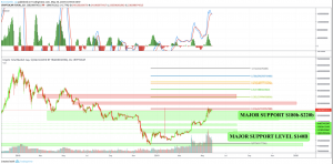The total market capitalization of the cryptocurrency market currently faces strong resistance at the 0.236 fib extension level at roughly $250b. With it finding strong support between $180b-$220b, the cryptocurrency market is most likely to remain bullish and move higher to the $300b mark. If the support is bearishly broken, the market finds its next support at $150b where to golden ratio level is located at. As long as this level holds, there are reasons to believe that the market is continuing its bull trend.