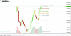 One of the non-Bitcoin-correlated cryptocurrencies seems to be FTM right now, which surged by an incredible 600 percent since its low in February 2019. It seems quite likely that FTM is about to initiate its correction, which would make $0.0135 at the golden ratio an interesting buy target.
