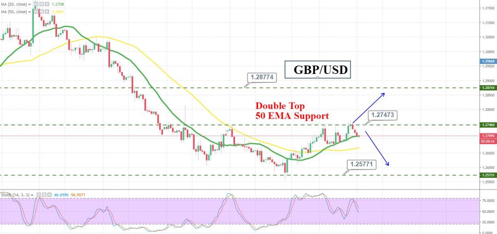 Technically speaking, the Cable is facing stiff resistance around 1.2750 while holding right above 20 and 50 periods EMA. Both these moving averages are supporting the pair above 1.2700, a psychological level.