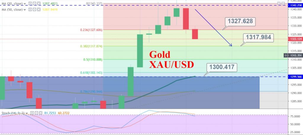 The precious metal GOLD prices are solidly lower in early Asian trading on Tuesday. The precious metal slipped dramatically from 1,328 to 1,321 over mixed sentiments. Looks like half the market is pricing in risk-off sentiment, keeping stock under pressure while the other half is weighing on the precious metals. The concerns about Sino-US trade unsettled the market optimism that followed a US-Mexico deal.