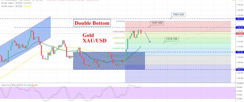 The risk sentiment is turning bearish for gold as prices broke through the critical support level of 1,342. The short setback was expected ahead of Fed policy rate to encash the pre-news profits.