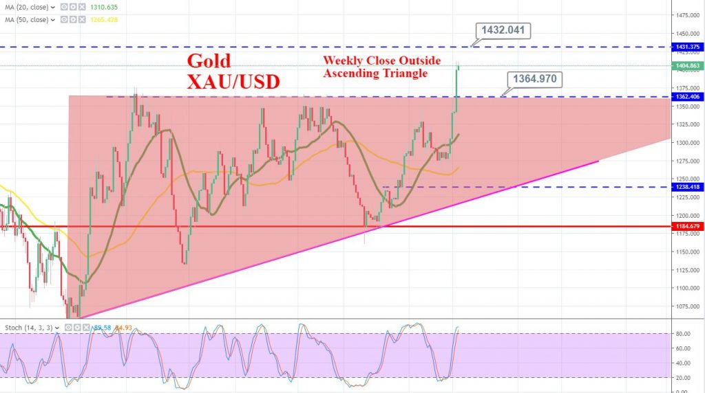 On the technical side, gold has violated the ascending triangle pattern to trade over $1,400 level. The weekly closing above $1,400 level is making supporting further bullish bias from traders.