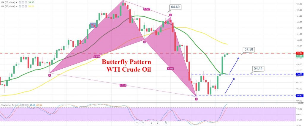 Technically, crude oil continues to be supported after it closed a bullish butterfly pattern on the daily timeframe.