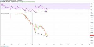 The daily chart of Ripple versus Bitcoin shows a bullish divergence in the RSI, which indicates that Ripple will either gain significantly against Bitcoin or that Bitcoin will drop significantly stronger than Ripple in price. With XRP potentially forming a double bottom right now, it seems very likely that XRP is gaining significantly in the upcoming days to weeks, which would result in an increase in the dollar price of XRP as well.
