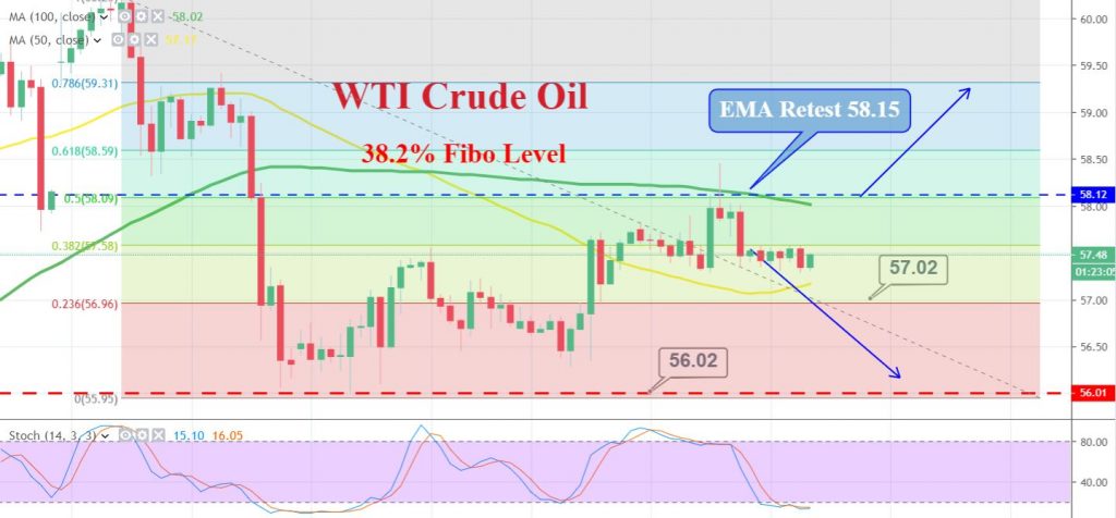 WTI crude futures are trading around 57.50 at the time of covering this update and that’s exactly where I’m looking to open a buying trade to target $58. Well, WTI crude oil prices were remaining under pressure due to the trade war between the US and China, which are now heading into the second year. Failure to enter into a trade deal simply discourages the possibilities of progress for international economic growth, which hits oil demand.