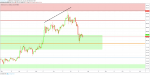 XRP reached down to the indicated support zone where it bounced off 20 percent. After reaching to $0.34, XRP started to decline again. If XRP holds above $0.30 it might go for a rally towards $0.37, where the 0.382 fib level is located at. However, as long as Bitcoin’s retracement continues, it seems very likely that XRP will continue its downtrend towards the support zone between $0.25 and $0.29.