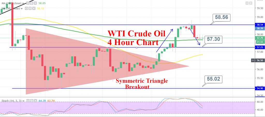 Crude oil prices slipped from $58.56 to $57.75 during the Asian session. Oil prices are declining for the first time in six days after the..