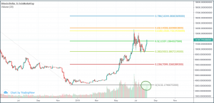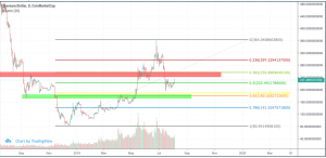 Ethereum held above the $200 mark the previous weeks and surpassed the 0.5 fib resistance at $222. For now, it seems very likely that Ethereum is moving towards the 0.382 fib resistance level at $255; however, it faces strong resistance area at $240 already. If Ethereum doesn’t break the $255 mark, it finds its next support at the golden ratio around $180.