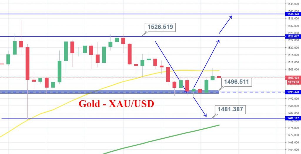 During the London session, the precious metal gold has traded mostly in line with our forecast above 1,495 support level. On the 4-hour chart, gold has formed a triple bottom pattern which extends support at 1,495 while the RSI and Stochastics are holding in the selling zone.