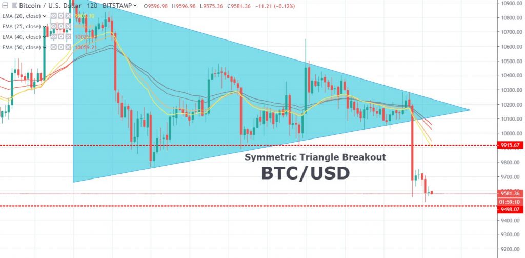 BTC/USD was facing solid support around 9,790 which has now been violated amid massive sell-off. For now, BTC/USD has an open room for 9,476 and 9,300. Let’s keep an eye on 9,790 as it can stay bearish below this level today.