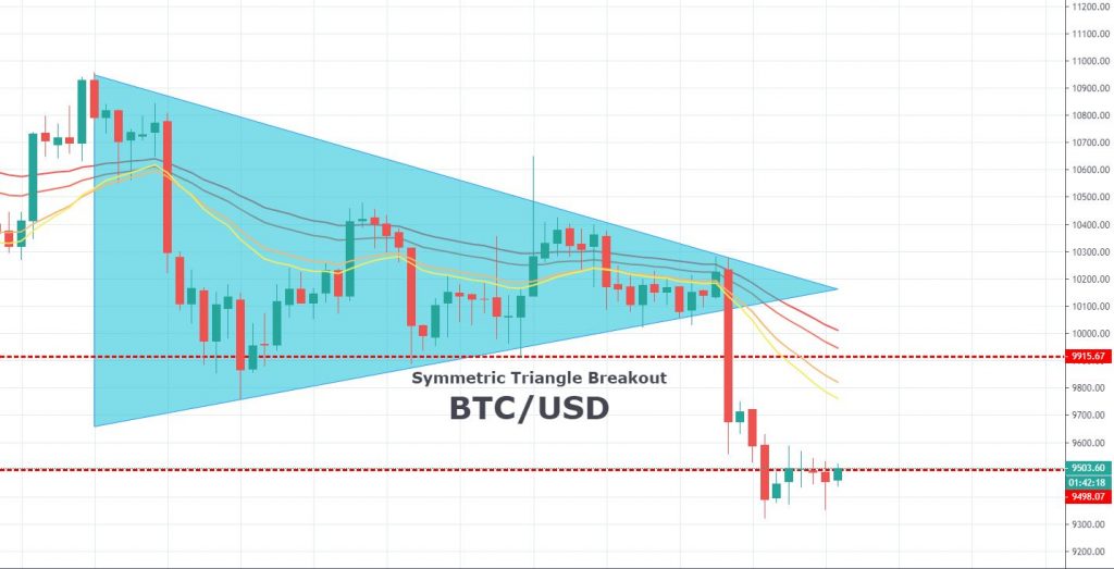 Can we expect a bullish reversal in BTC/USD? Well, looks like yes as it heads towards double bottom support area of 9109 on the daily time frame. With that, the speed of bearish price action has also slowed and it has started forming Doji candles which can either be due to summer’s thin volatility or maybe a change of sentiments among traders. Well in both cases, 9109 is a crucial level. Immediate support is 9315 and resistance stays at 9550.