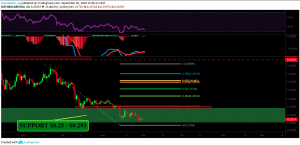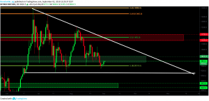 Bitcoin bounced off nicely the 0.382 fib level at $9,500 and is currently in support zone up to $10,120. Bitcoin will most likely range between the current support and the resistance at $11,500; however, the overall trend is currently in a descending triangle, which is rather bearish. Bitcoin finds its next major support between $8,200-$8,500 and between $7,400 and $7,800.
