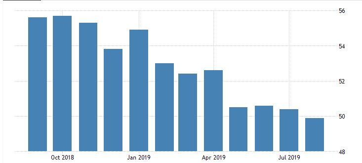 Just like other PMI figures, ISM manufacturing is also compared against 50 thresholds. Above 50.0 indicates industry expansion, while below indicates contraction. Apart from the headline, it is important to note the higher PMI figure ultimately signals growth in GDP, sales and inflation. The latest reading pointed to the first month of contraction in the manufacturing sector since September 2009, as new orders fell the most in ten years led by the largest decline in exports since August 2009. Manufacturing PMI in the United States is reported by Markit Economics.