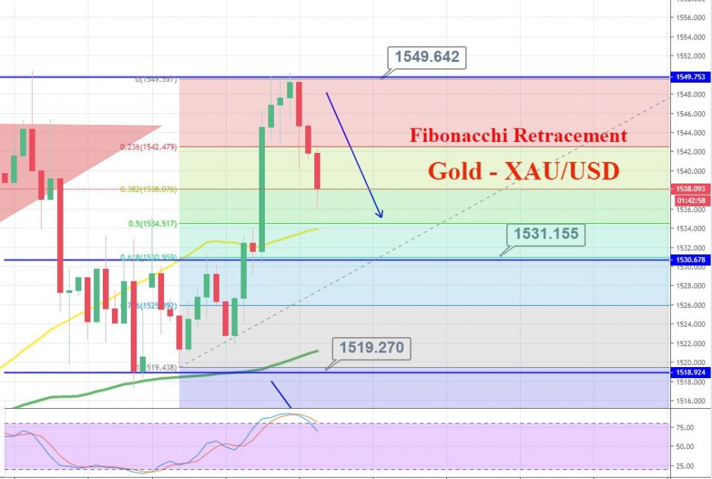 On the technical side, the oversold gold has started retracing back after placing a high of $1,549 during the Asian session.